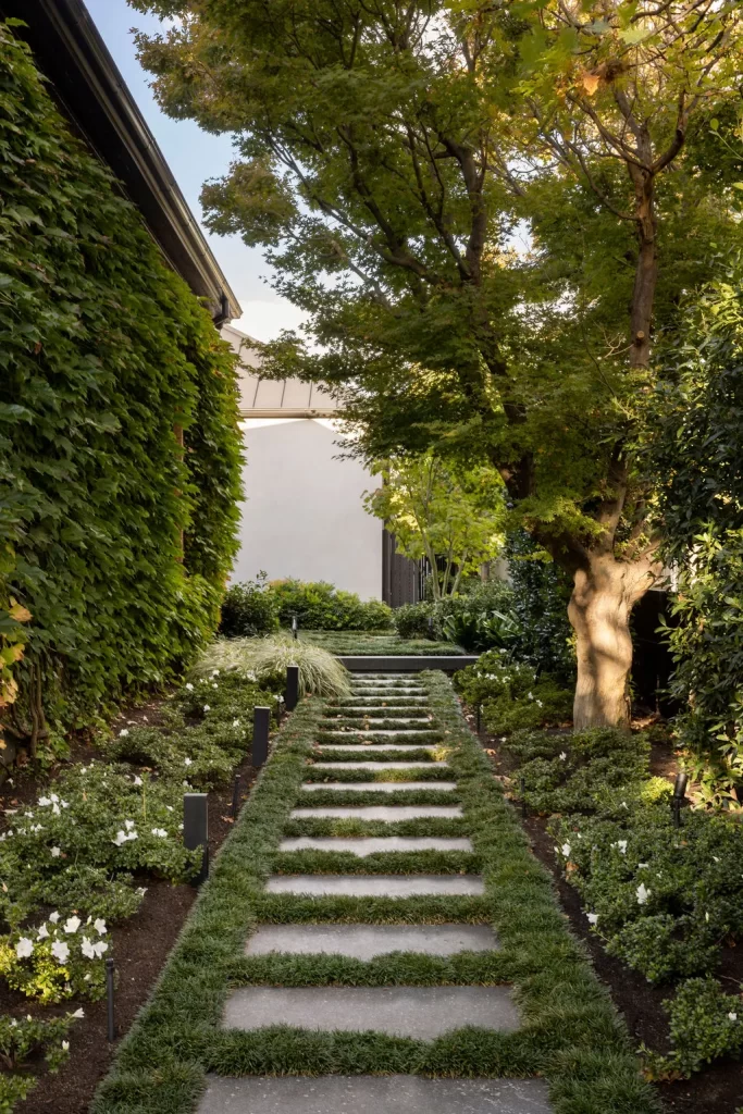 – Bluestone stepping stones in gardens and pathwaysCreates natural flow, slip-resistantRegular cleaning to avoid moss or algae buildup