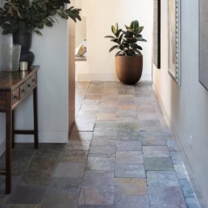 Slate is one of the finest rocks, known for its durability and weather resistance. Slate is easily split into smooth, flat plates, and as tiles come in a calibrated or uncalibrated state Slate is versatile and can be used both inside and out.