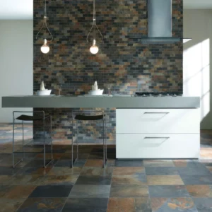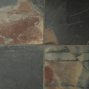 From vibrant blue, orange and green-veined tiles to neutral brown and grey hues, Slate is a highly versatile