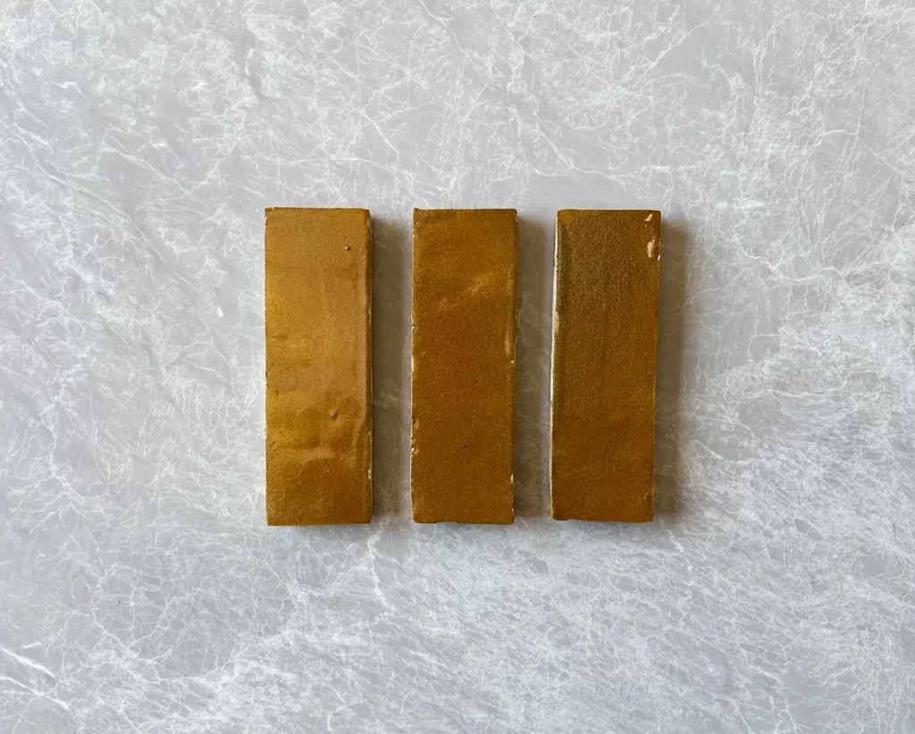 The Honey Moroccan Zellige Baton is a beautifully handcrafted tile in a warm, soft honey rust hue with a glazed finish. Its glossy surface enhances the richness of the colour, creating a luminous effect that shifts subtly with the light.