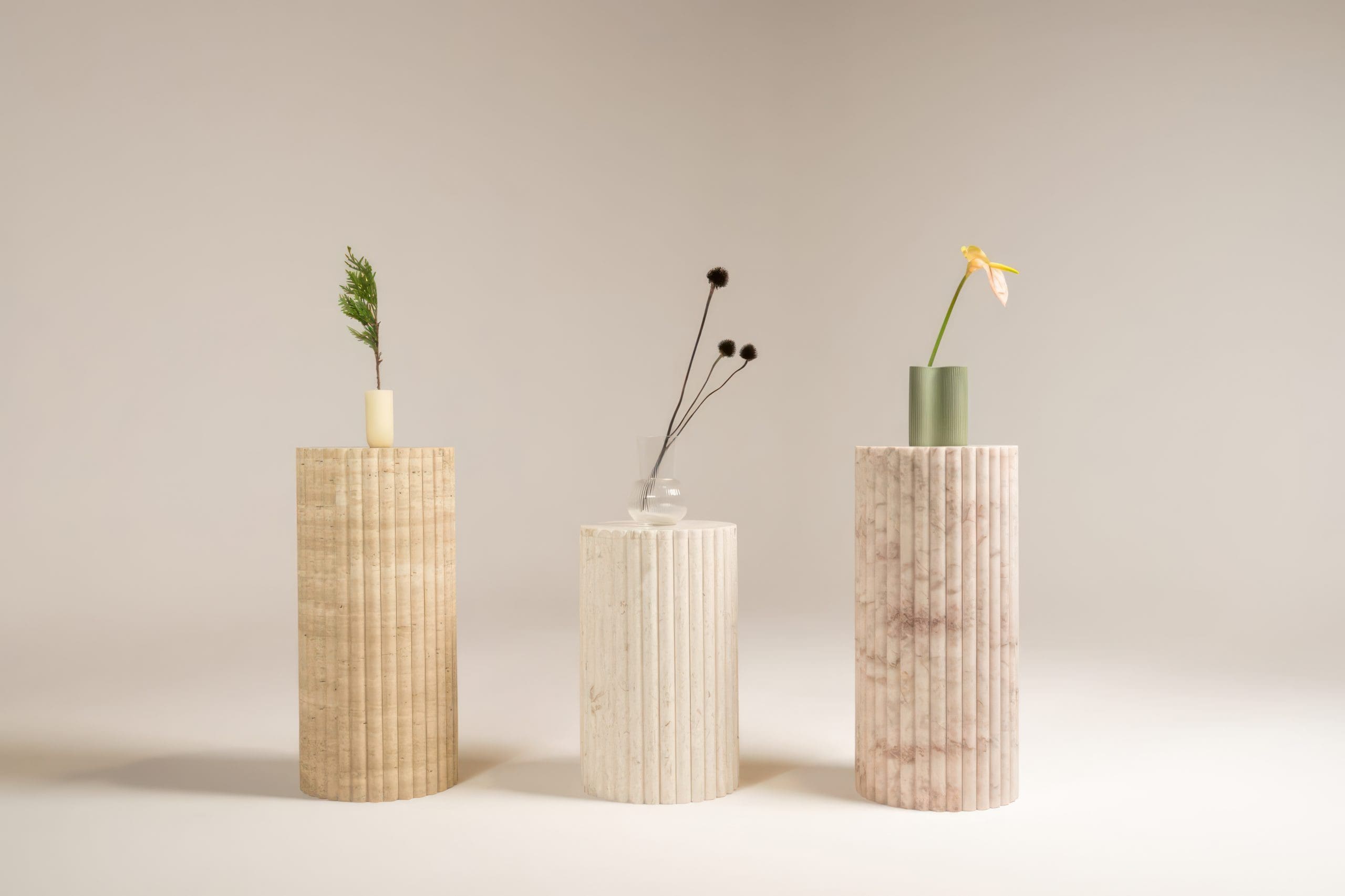 Each plinth is meticulously crafted from a range of exquisite natural stones, such as marble, limestone, or travertine, ensuring a luxurious and durable centerpiece. The inherent variations in the natural stone provide a unique texture and pattern, making each plinth a one-of-a-kind masterpiece.