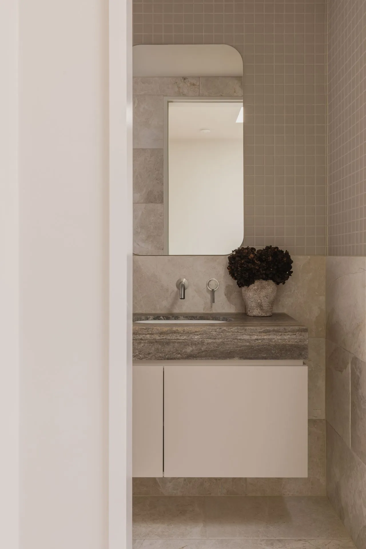 Introducing Titanium Silver Travertine—a symphony of elegance in every layer. This grey stone is adorned with subtle horizontal veining that tells a story of timeless beauty. Its cream background, coupled with delicate grey banding, creates an atmosphere of refined sophistication that seamlessly bridges traditional and modern designs.