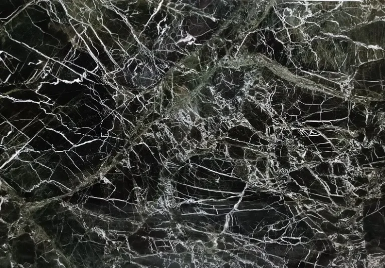Verde Levanto Marble is a striking natural stone renowned for its deep, rich green base, dramatically accentuated by bold white veining and occasional touches of dark moss and earthy undertones. The intricate network of crisp white veins cuts through the dark surface like lightning, creating a bold and luxurious statement.