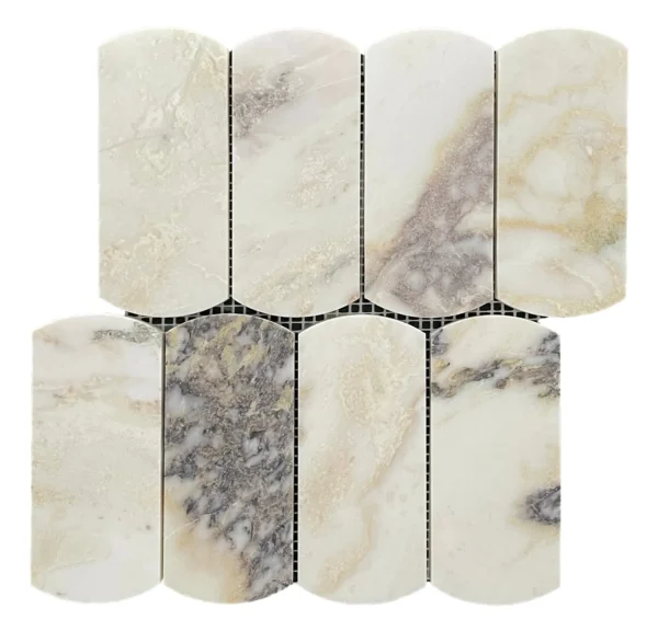 Viola Arch is a stunning marble mosaic with a crisp white base, accented by striking burgundy, grey, and gold veining. The deep burgundy adds warmth and richness, while the soft grey provides subtle contrast. Delicate gold veins weave through the surface, adding a touch of luxury. With a honed finish that enhances its natural beauty, Viola is perfect for feature walls, backsplashes, kitchens and bathrooms, bringing elegance and sophistication to any space.