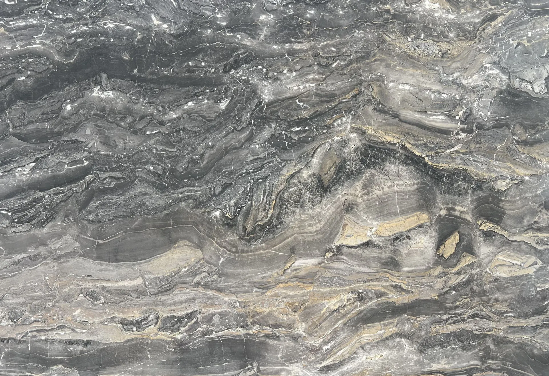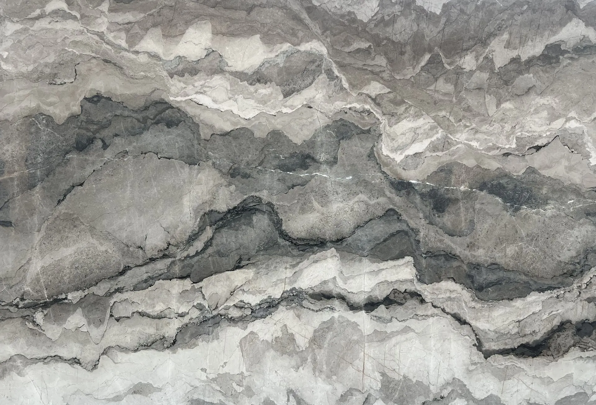 Camouflage Marble is a captivating natural stone celebrated for its bold movement and layered tonal palette. Sweeping bands of soft white, grey, and deep charcoal cascade across the